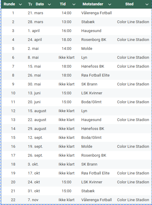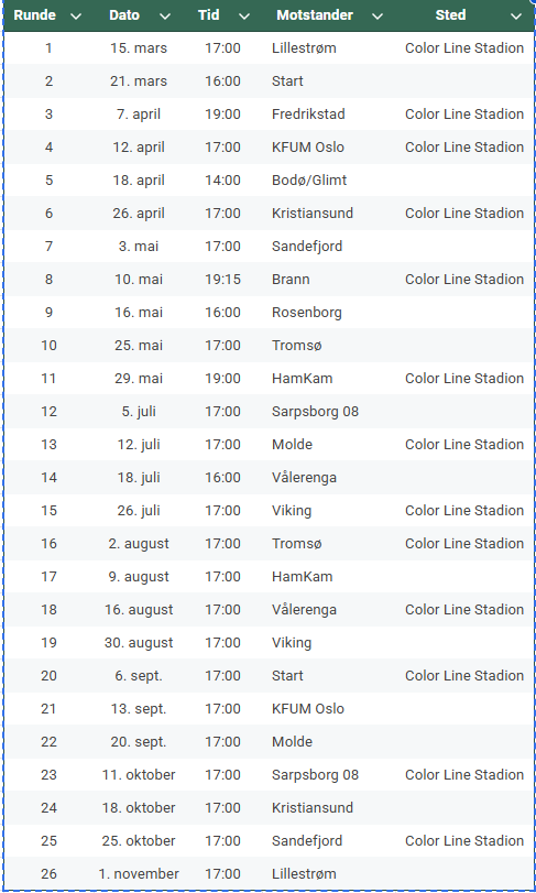 (NB! Det kan bli endringer i kamptidspunkt utover sesongen, når TV-kamper blir bestemt)